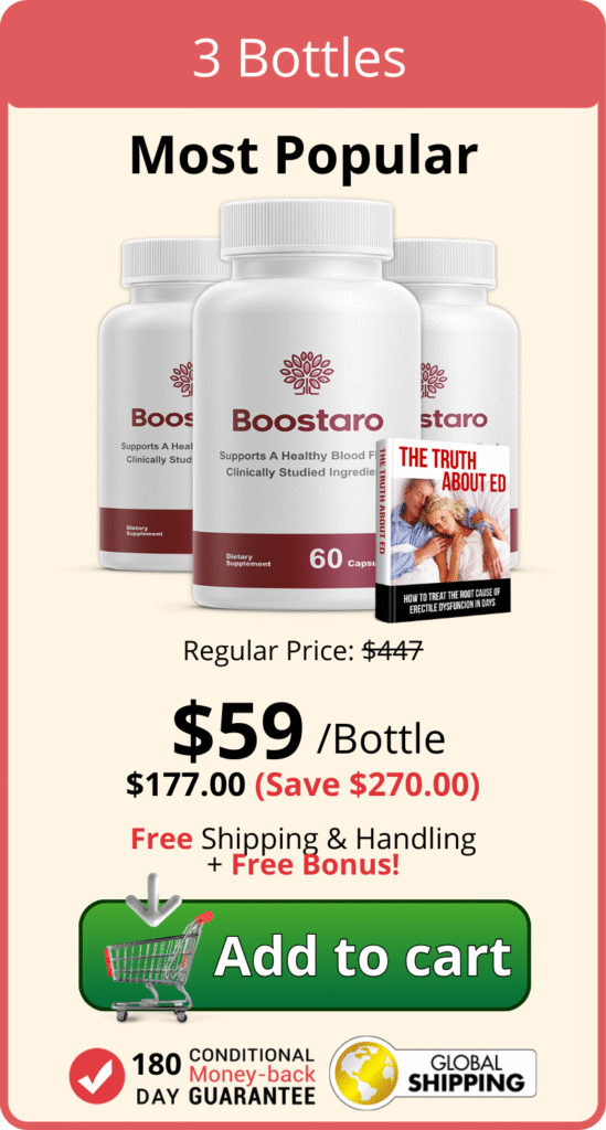 Boostaro is a supplement specifically formulated to support erection strength, penis enlargement, and overall sexual performance. Its advanced formula is backed by research and combines scientifically proven ingredients that help enhance blood flow, boost testosterone levels, and promote lasting sexual health.
